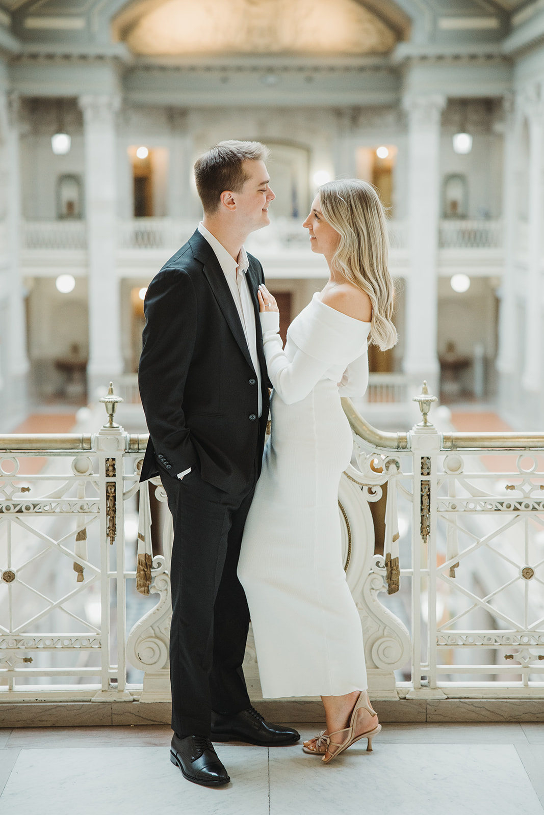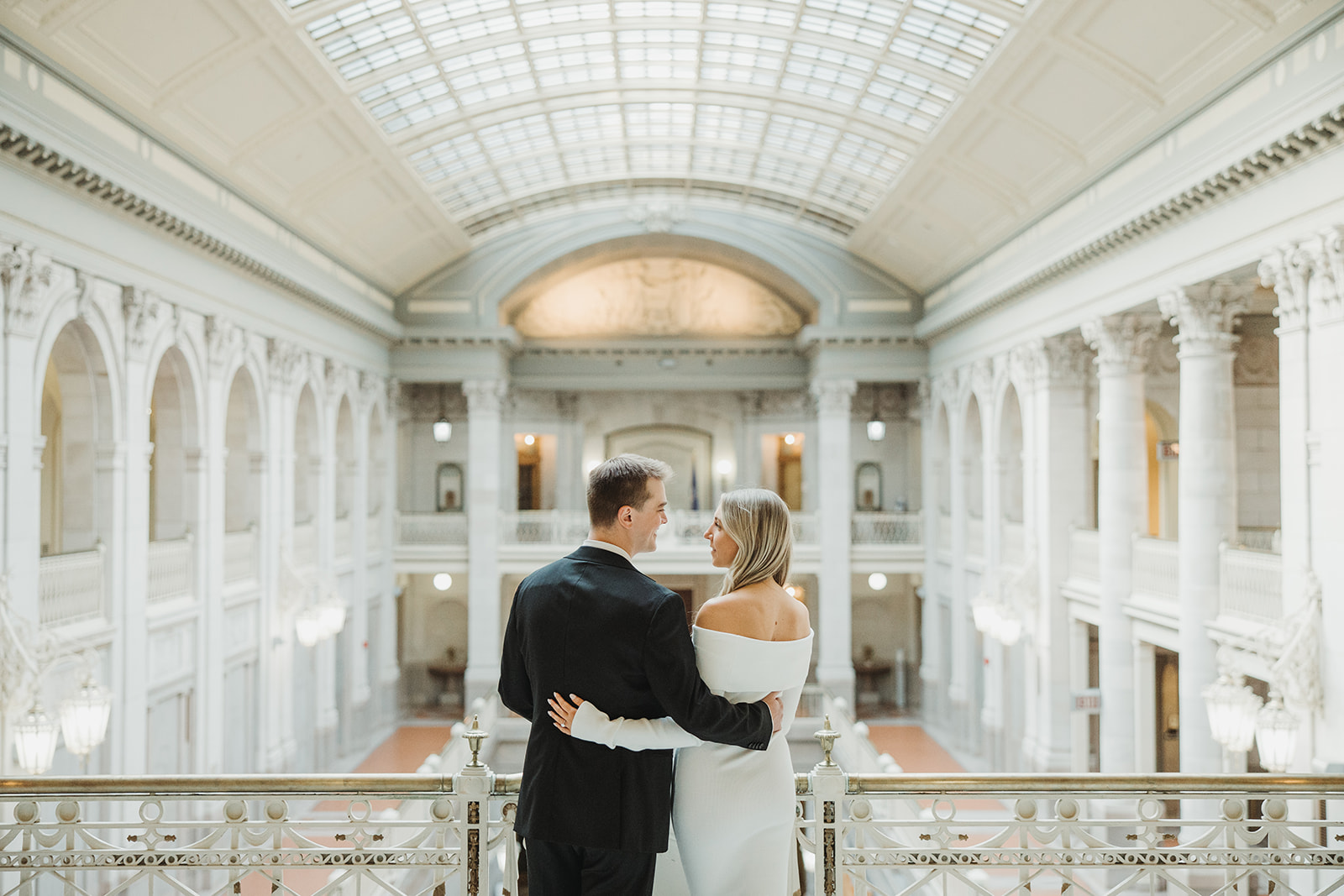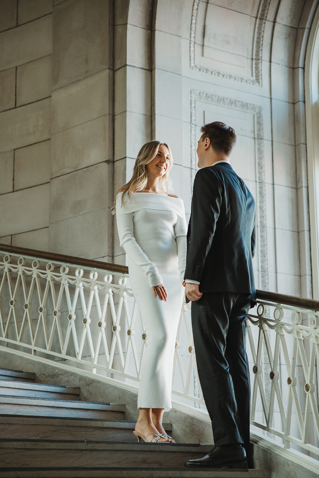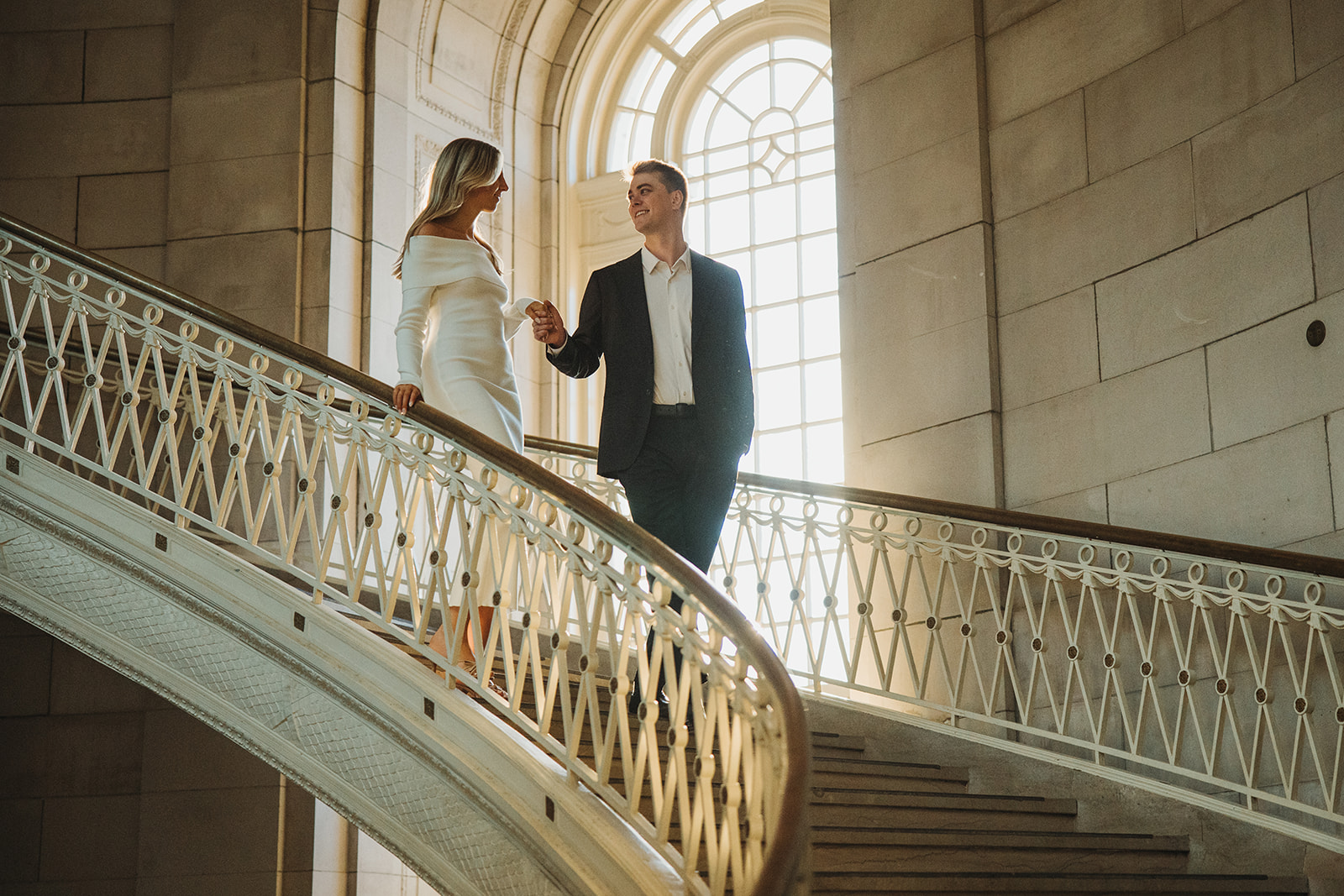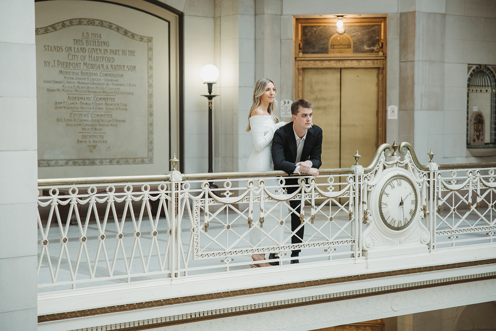 Needless to say, Hartford City Hall is an ideal setting for engagement photos featuring breathtaking architecture, all while keeping warm during the winter months. Above all, the light pouring through each crevice of the building creates an idyllic setting for your prewedding photoshoot.