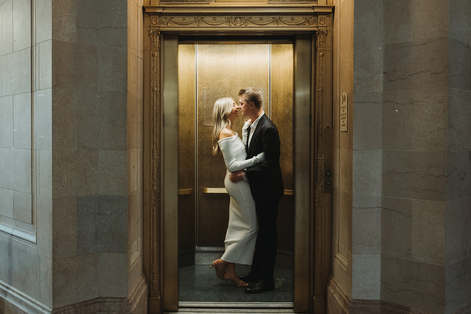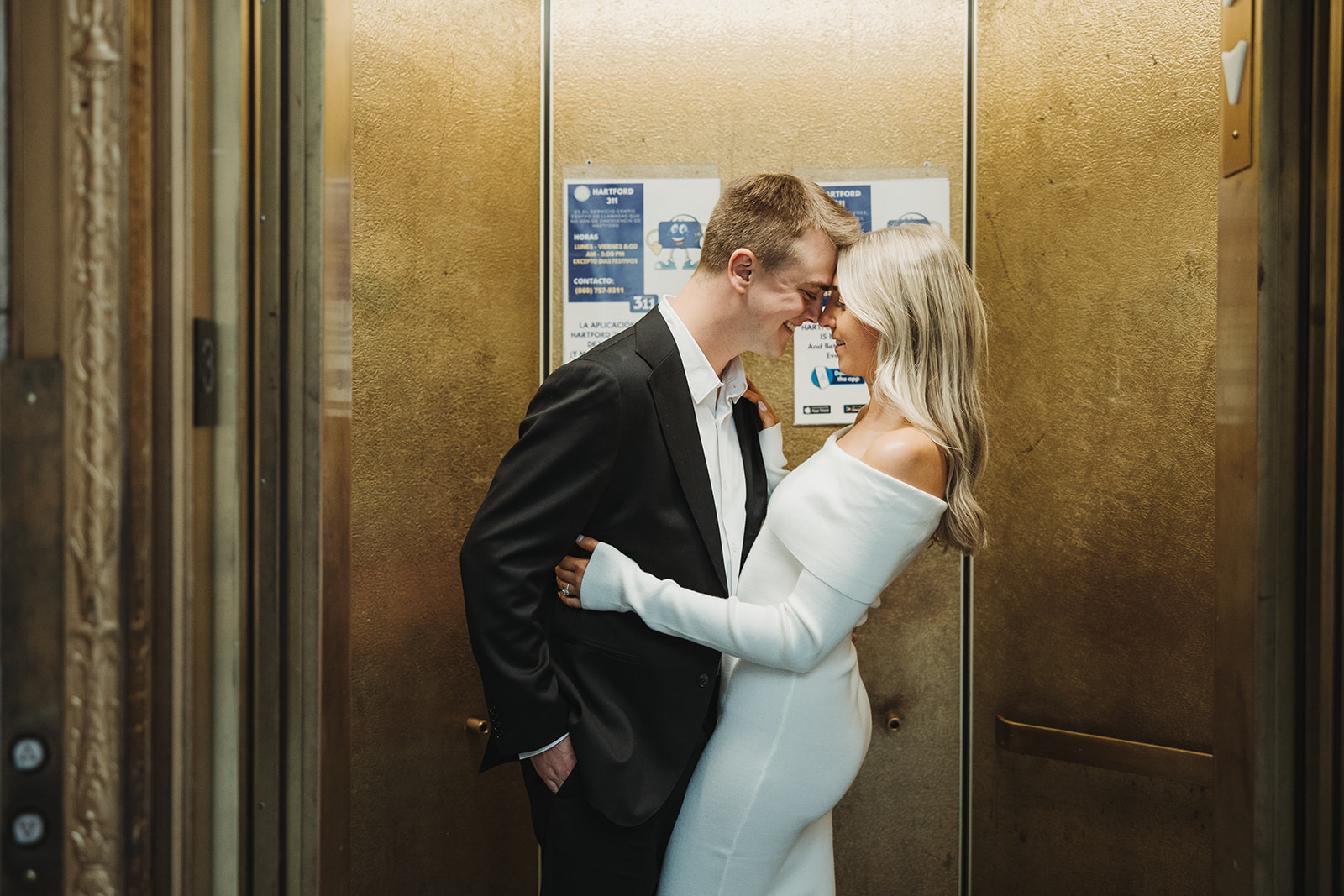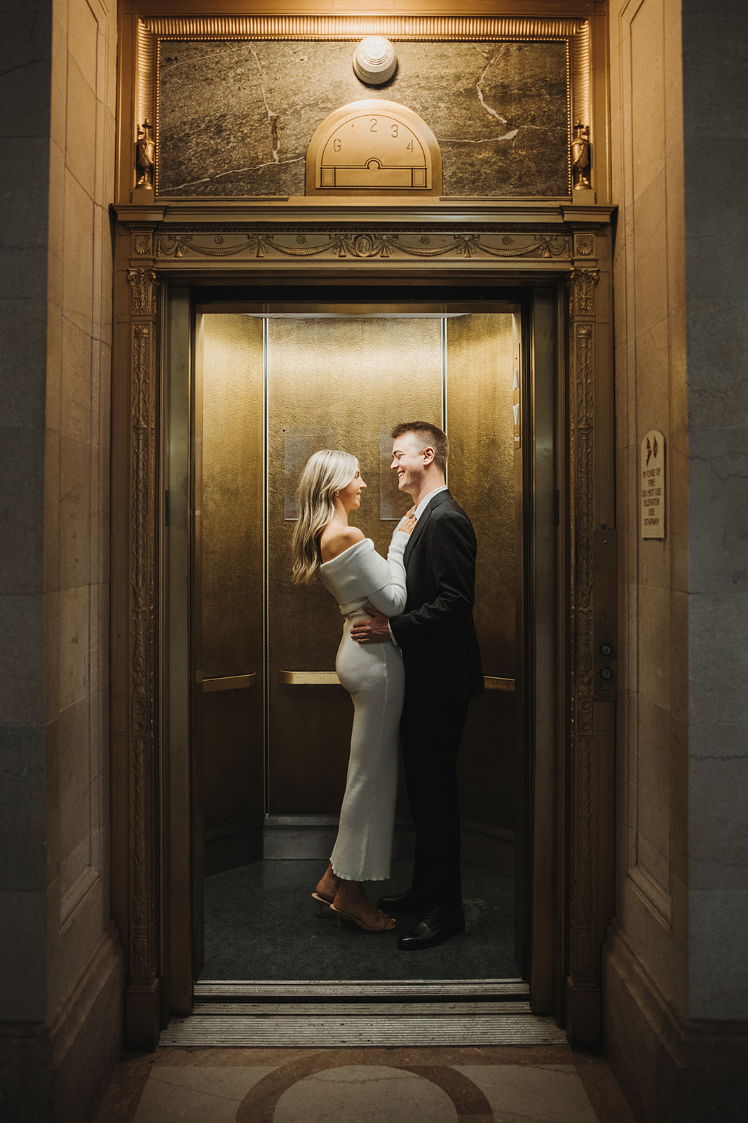 The interior of Hartford City Hall is vast. In order to make the most of Megan and Dave’s photoshoot, my overall vision was to explore the crevices and details. This approach was designed for us to look at each corner of the building with a unique perspective. All in a way that was imaginative and transformative. The stairway became a place where a romantic rendezvous could unfold. Stolen kisses were relished as the doors to the elevator began to shutter. Entryways and walkways became paths for embodying the story that Megan and Dave were writing for themselves. Furthermore, deepening their connection and solidifying their bond on their journey to be wed. When I met with Megan and Dave for their Engagement photos in Connecticut, their hearts were open to the experience. They embraced their free-spirited side, freely celebrating their love.