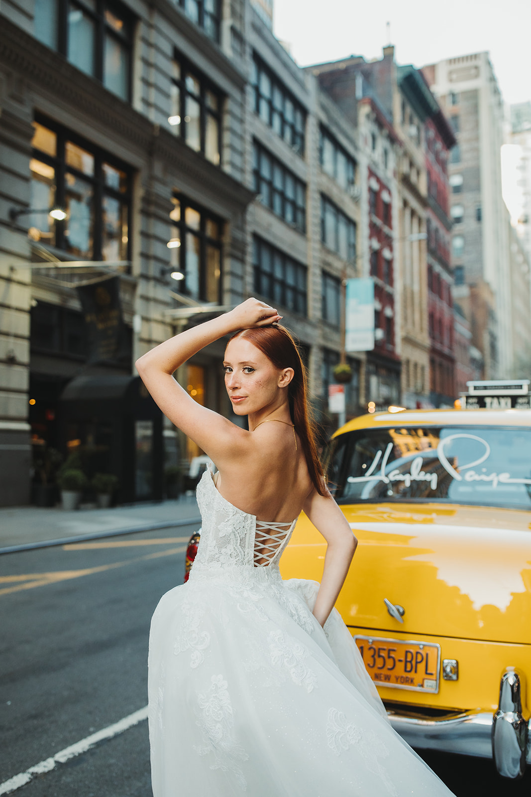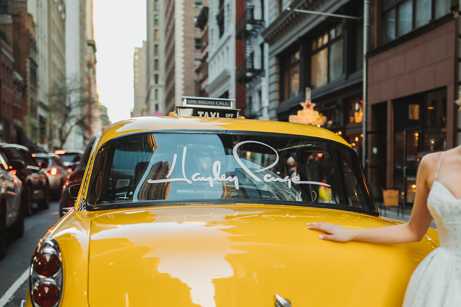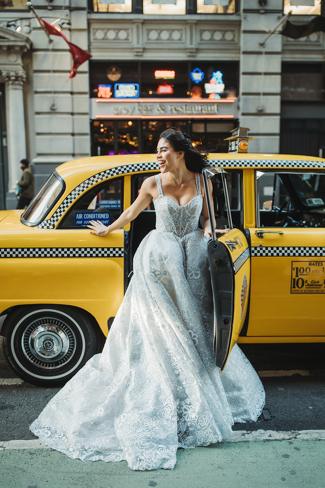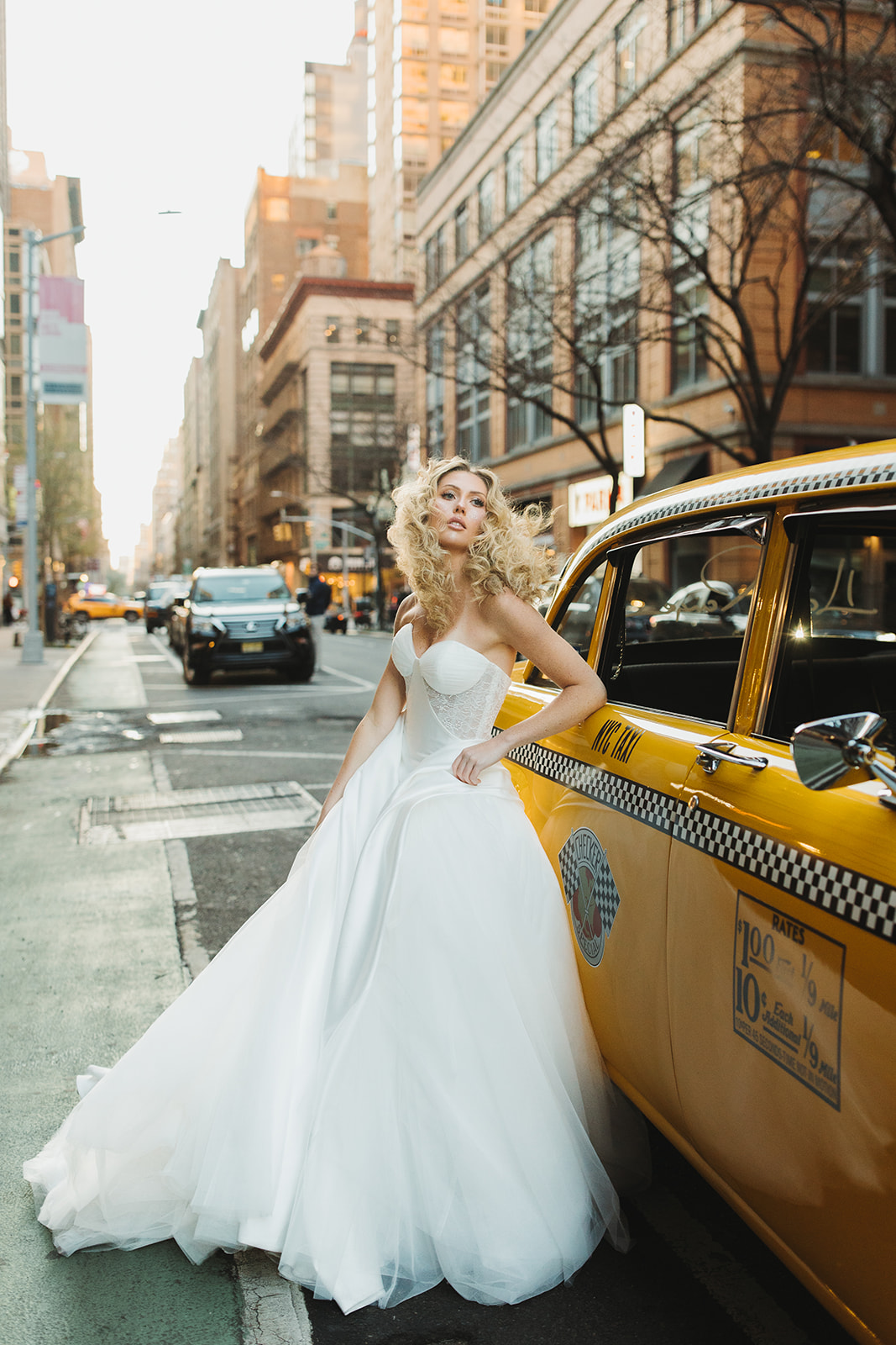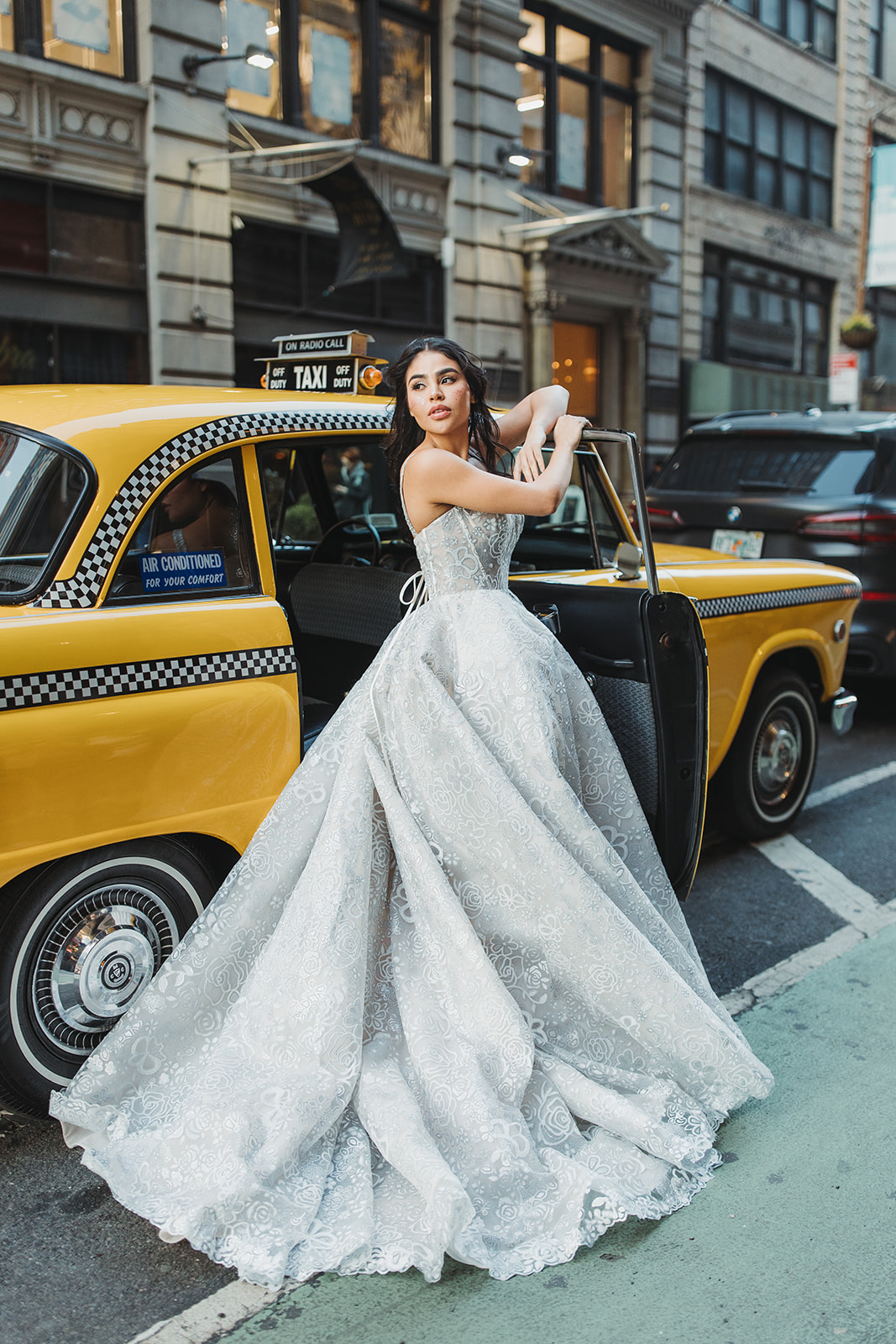 There’s something to be said about a woman hailing a cab in a well-structured wedding gown. The fairytale of a wedding day gives way to the necessity of everyday life. Thus creating an expressive moment where artistry meets demand, allowing you to step inside a new kind of story. Very representative, I suppose, of Hayley’s much-awaited and highly embraced return to the bridal industry.