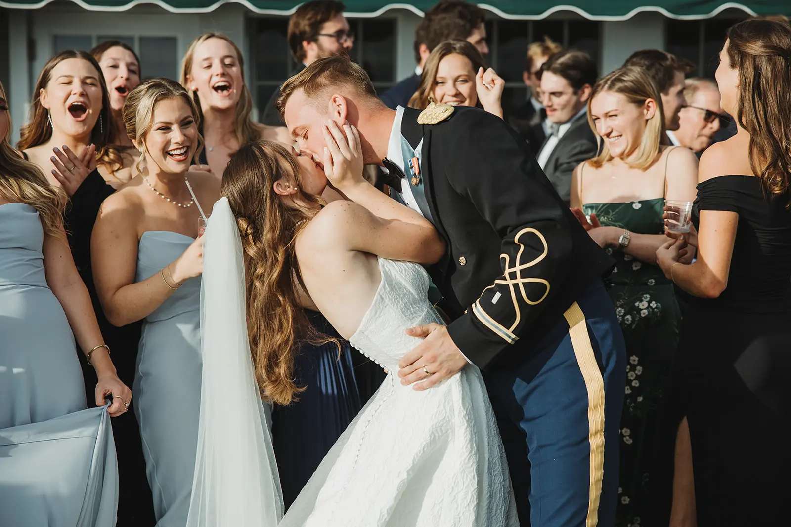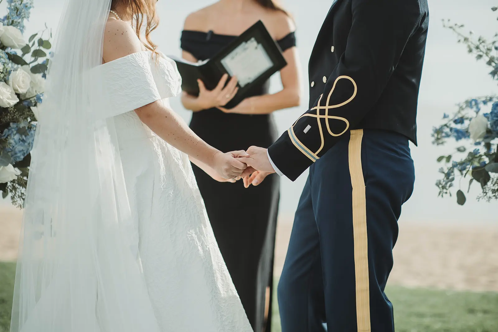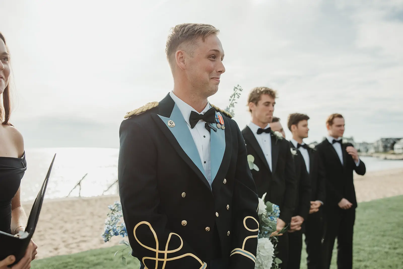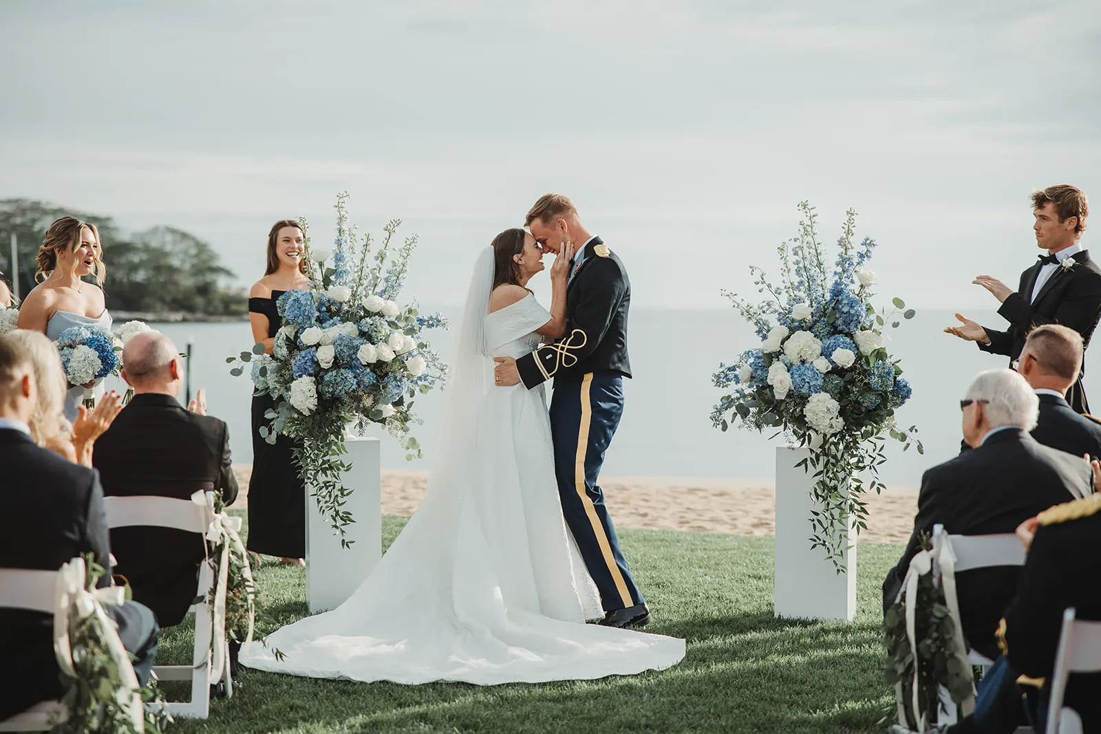 As our time along the shore drew to a close, a grand welcome awaited at their reception. To honor Karl’s military service, a saber arch entrance was formed as they made their way to the awaiting celebration.