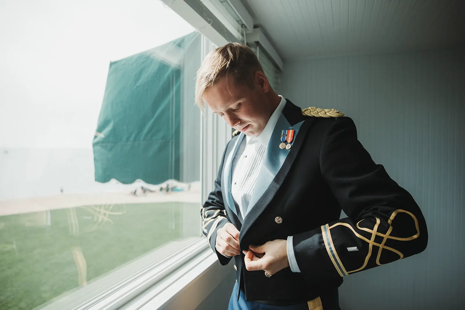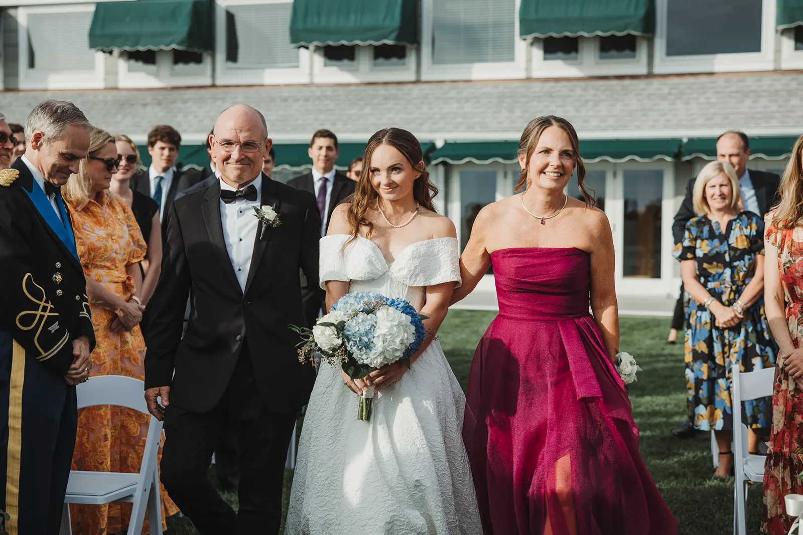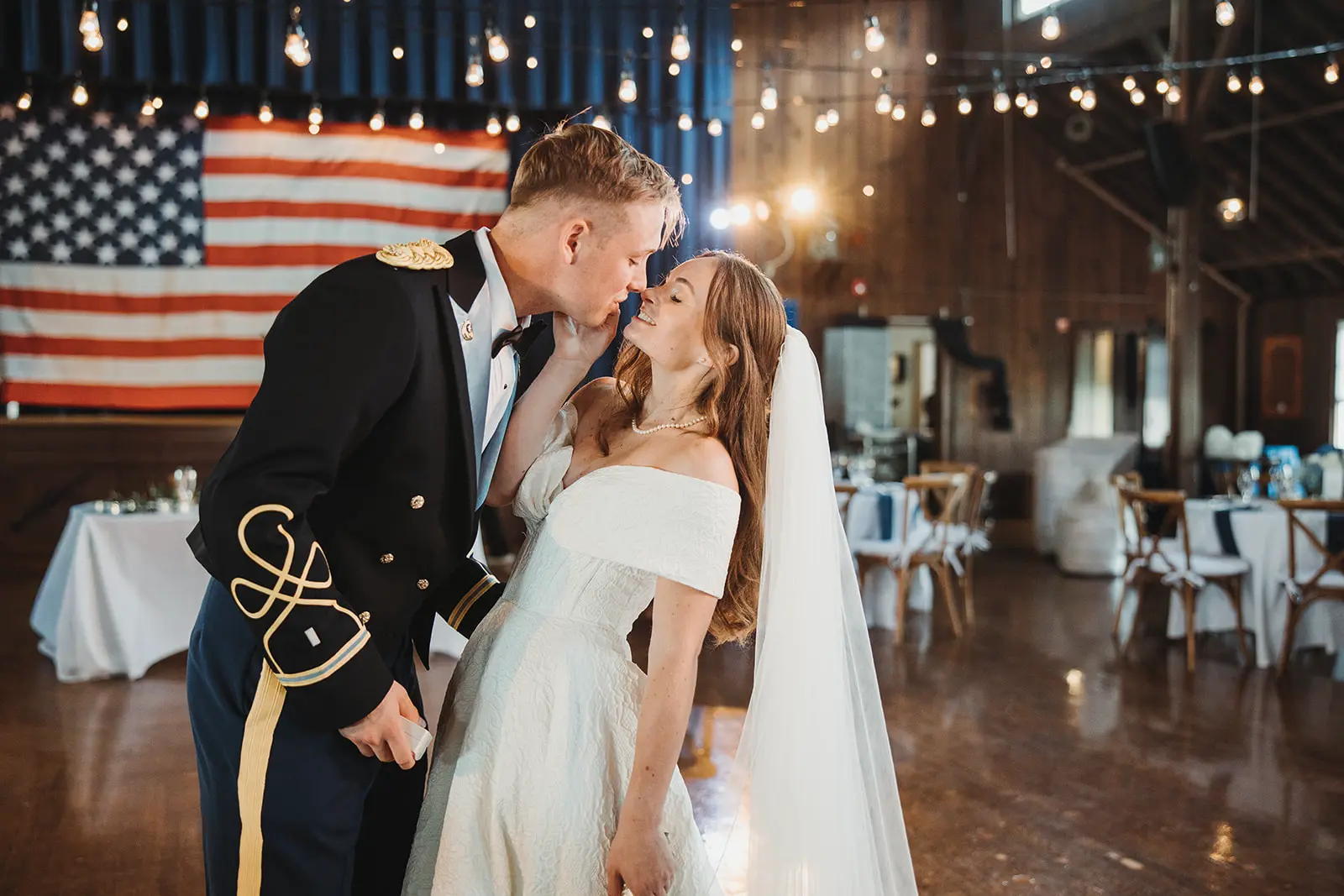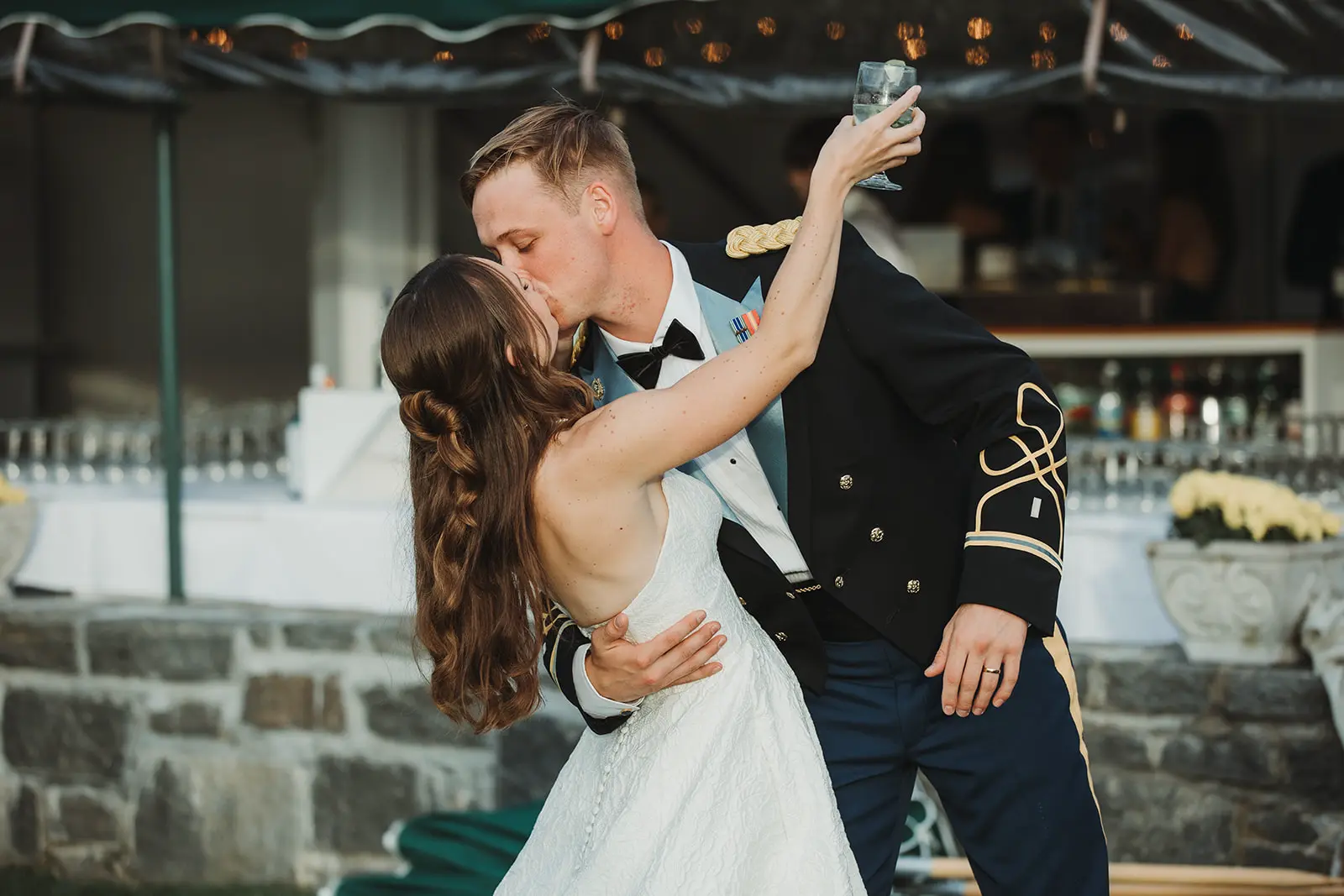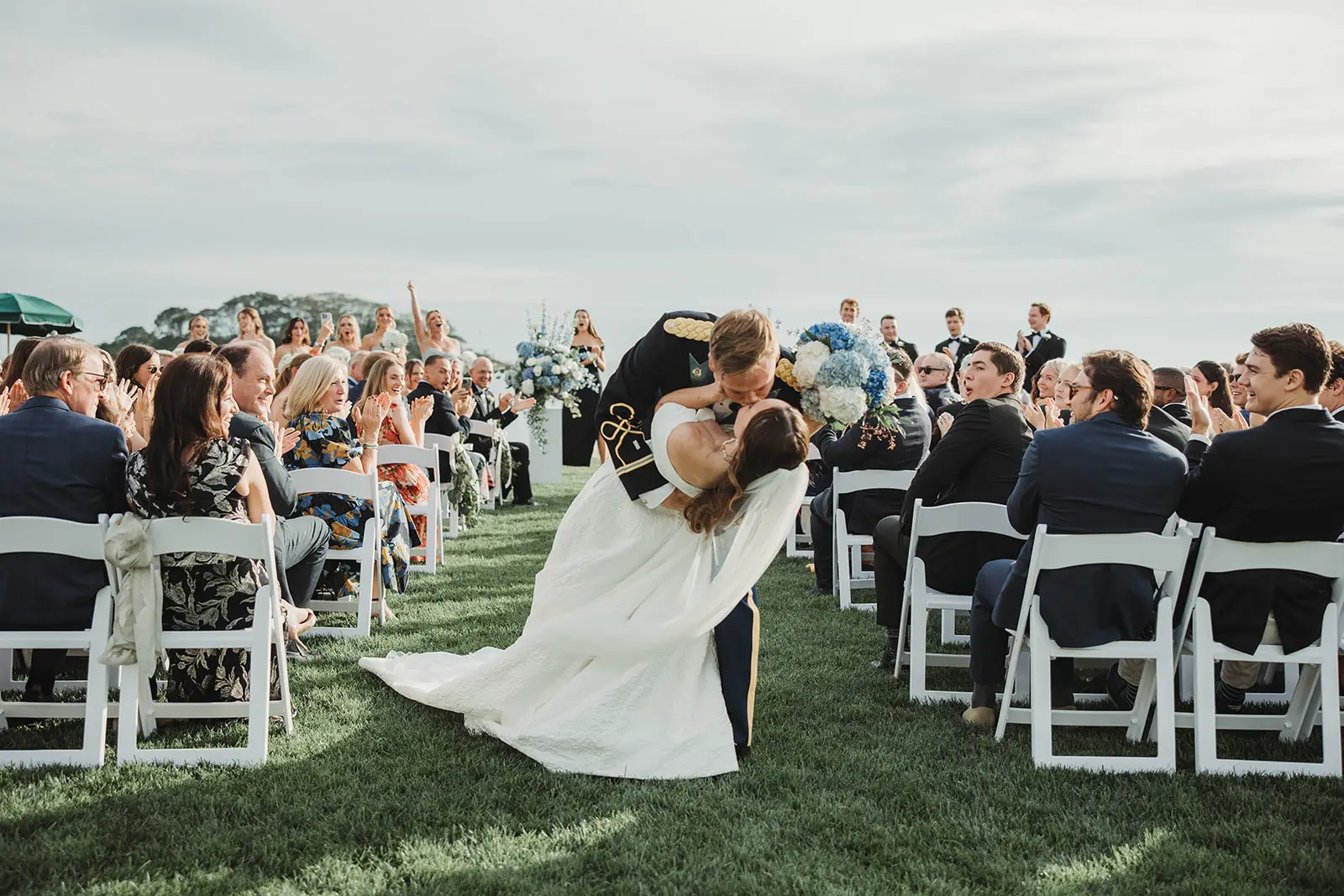 As our time along the shore drew to a close, a grand welcome awaited at their reception. To honor Karl’s military service, a saber arch entrance was formed as they made their way to the awaiting celebration.