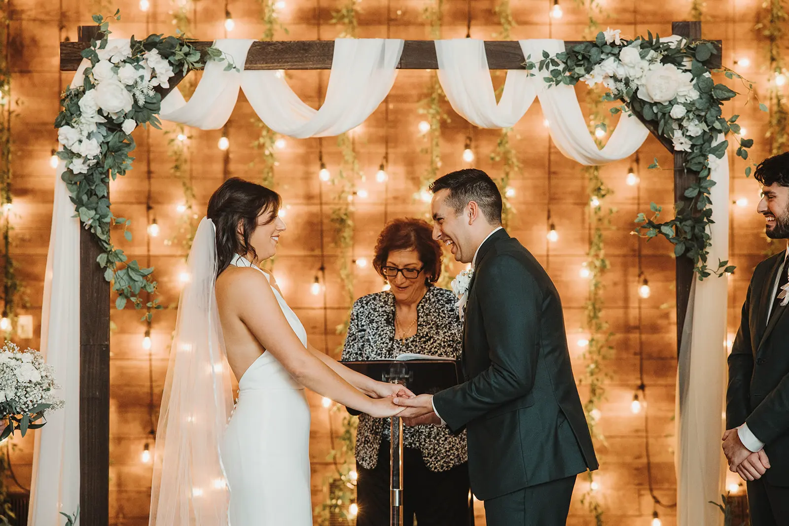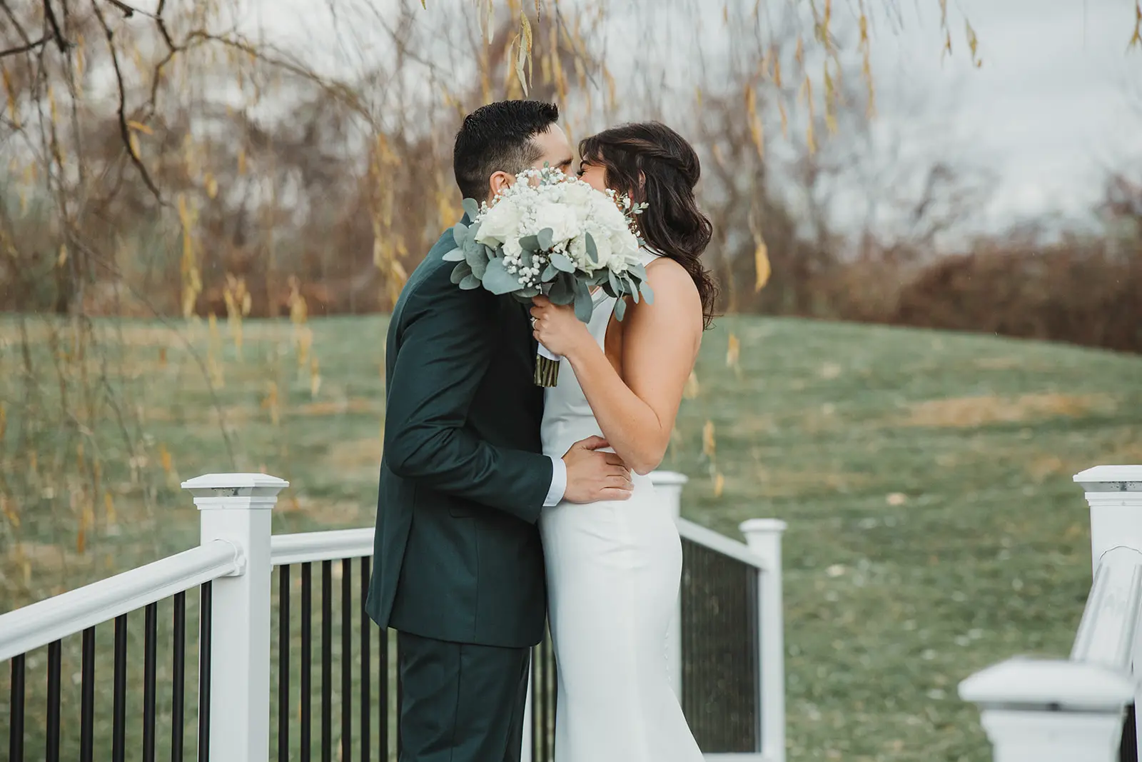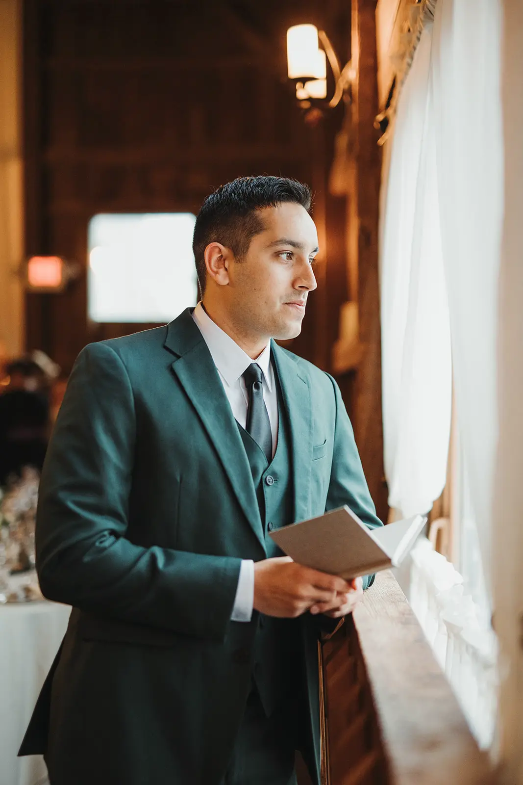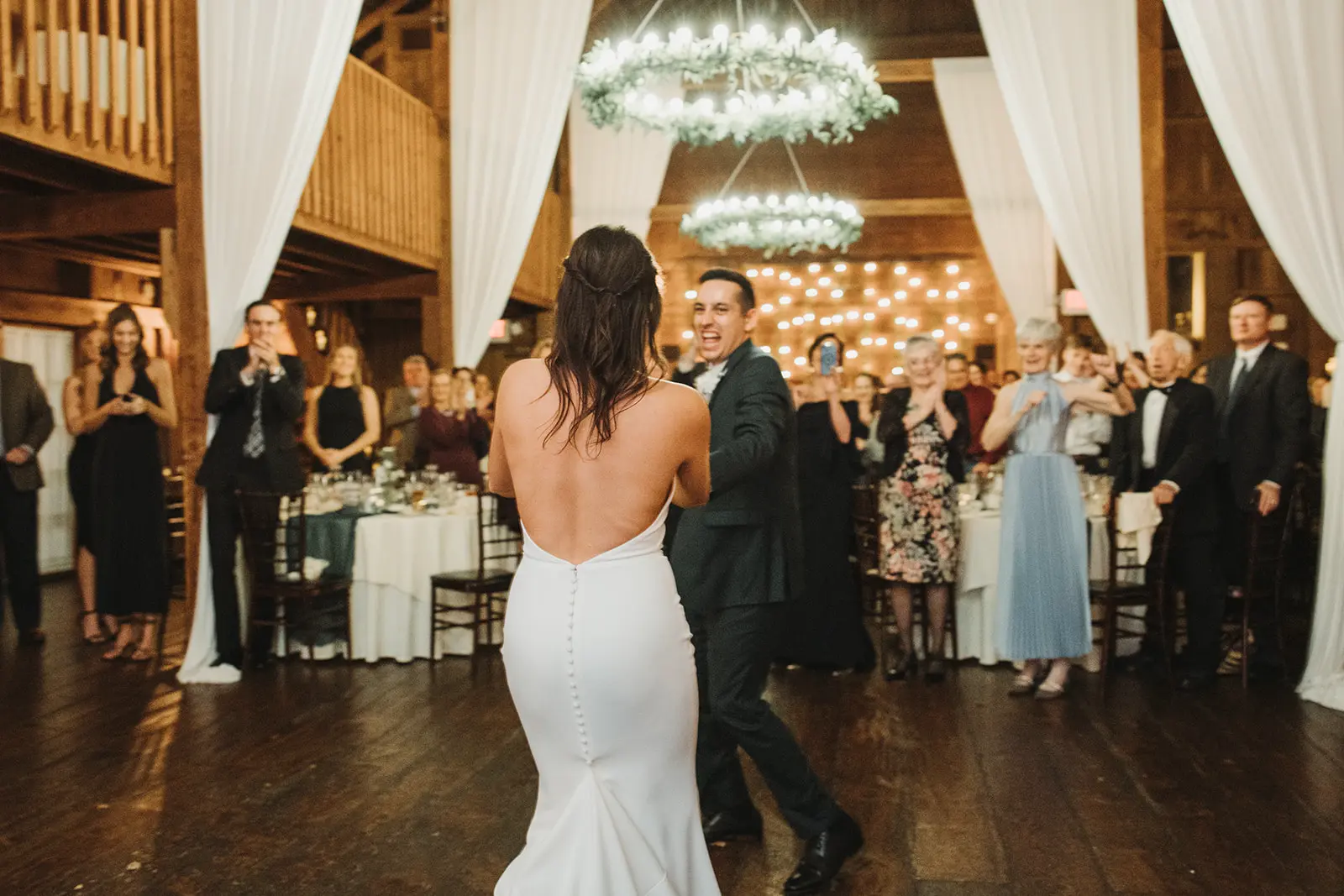 Their wedding day began on the grounds of The Barns at Wesleyan Hills, with a first look and private exchange of vows on the venue’s footbridge. Nestled under the trees, this space offered a quiet reprieve where Marisa & Ajay could begin their wedding day through an intimate, shared moment filled with private promises.